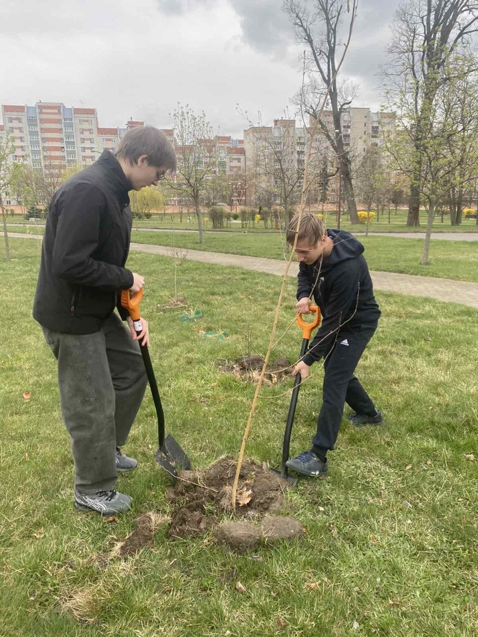 Вооружившись граблями, метлами и лопатами ребята вместе со взрослыми очистили газоны и клумбы от сухой травы и листвы, подмели дорожки и привели в порядок спортивную площадку.